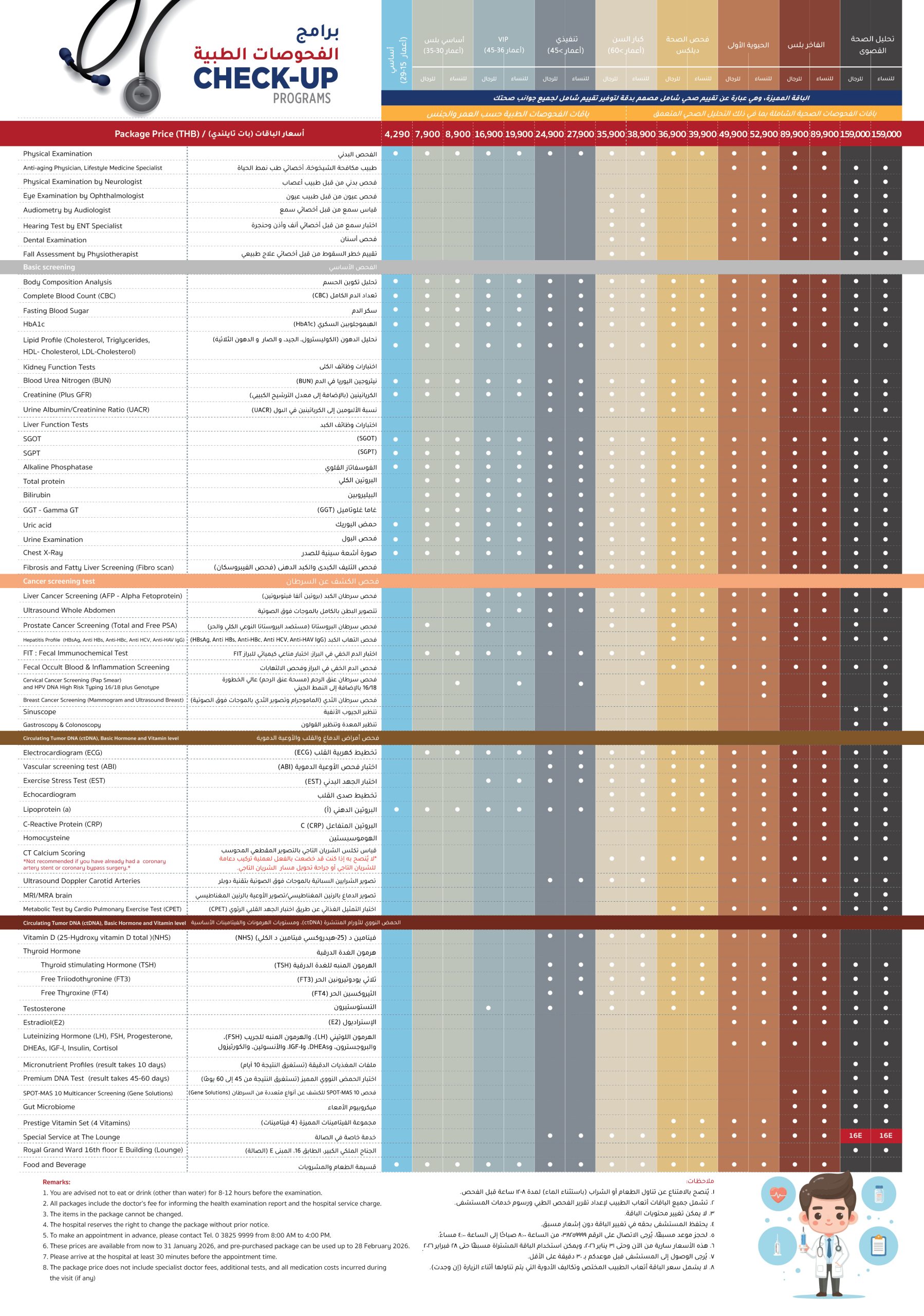 - تنفيذي رجال(أعمار >45) أسعار الباقات 24,900 (بات تايلندي)