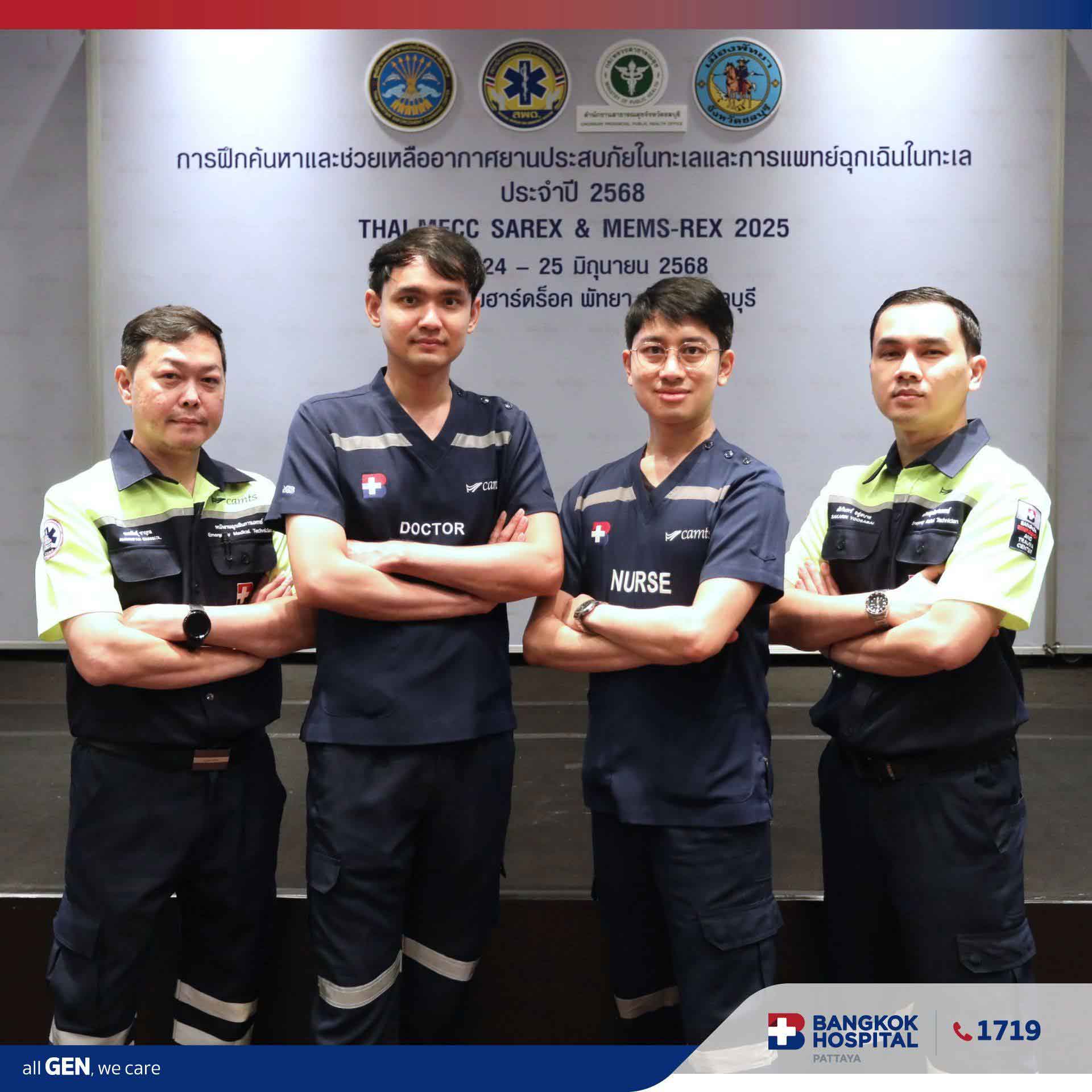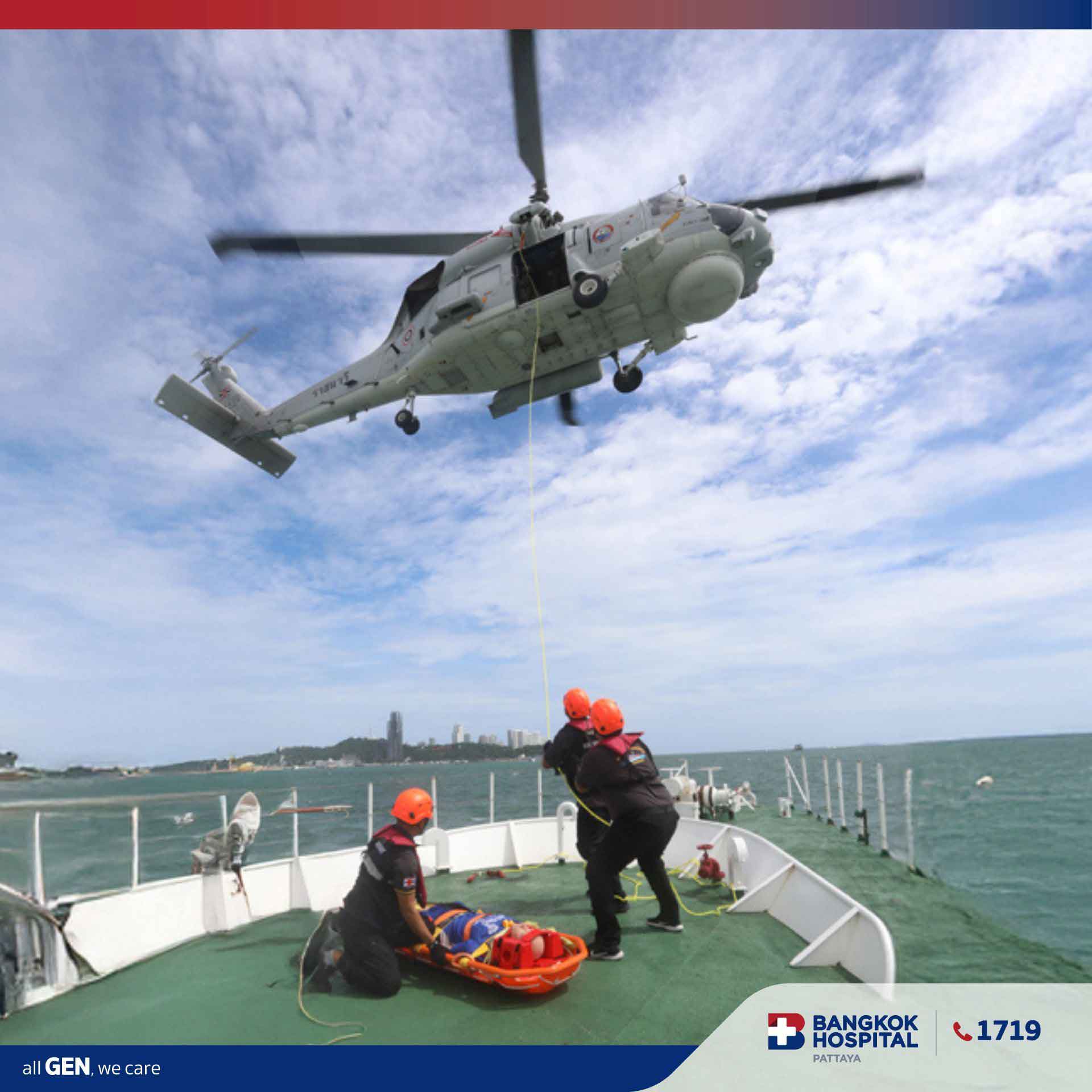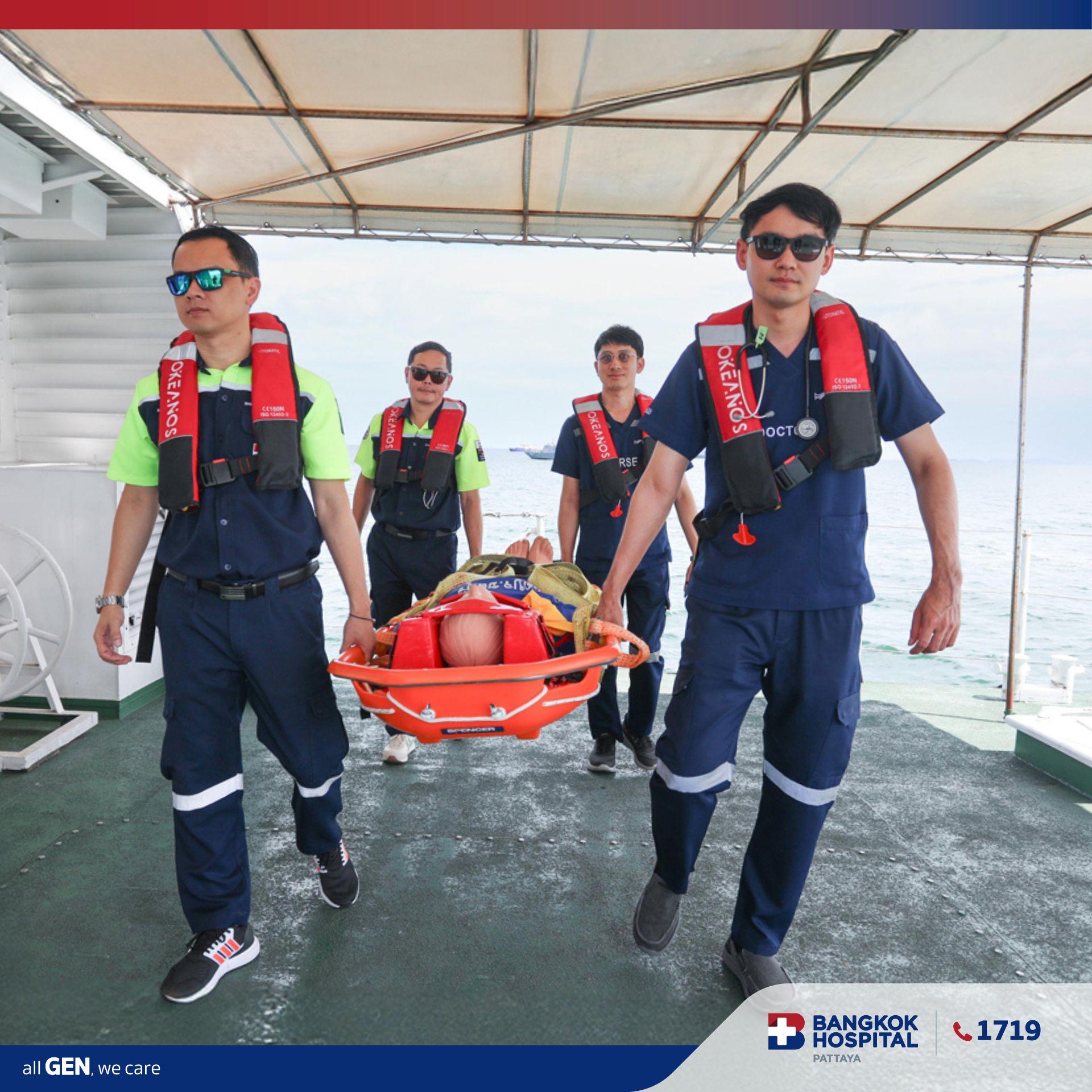 In collaboration with the National Maritime Interest Protection Command Center Region 1 and the Chonburi Provincial Public Health Office, Bangkok Hospital Pattaya proudly participated in the joint search & rescue and maritime emergency medical services training held in Pattaya Bay.
