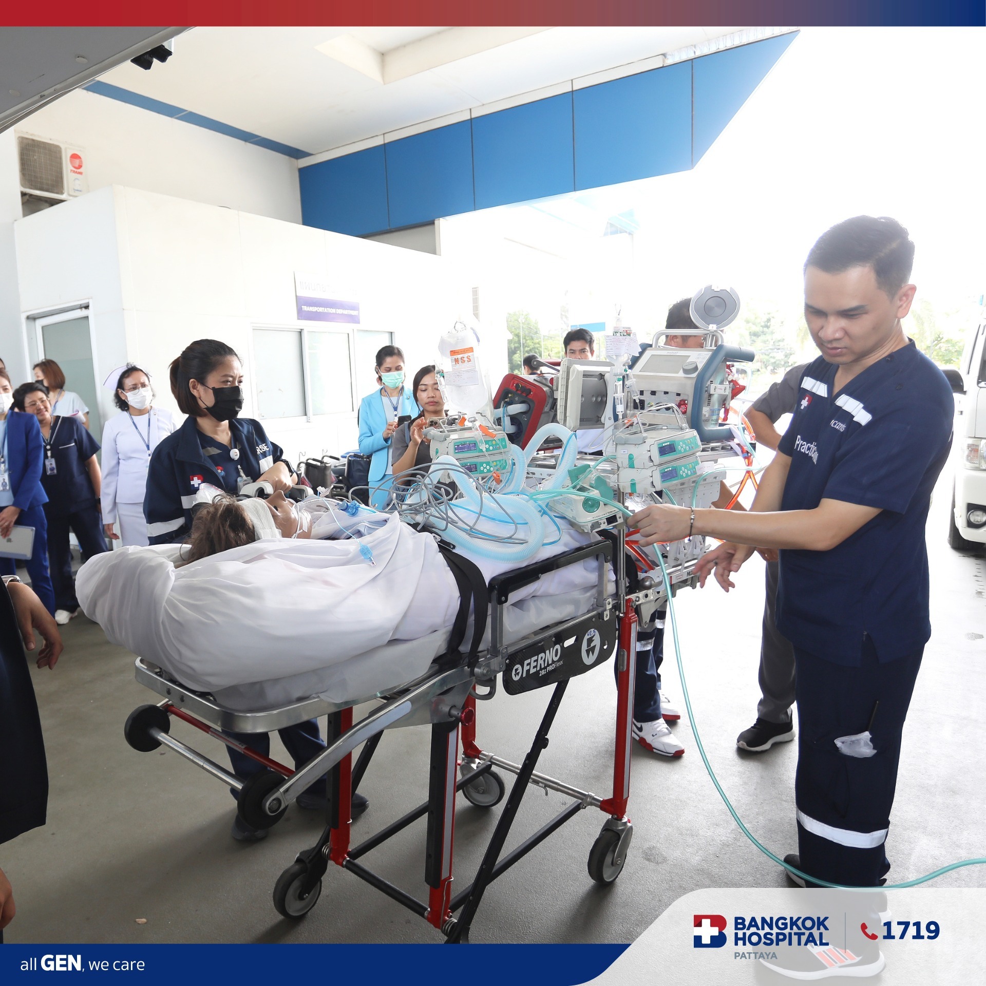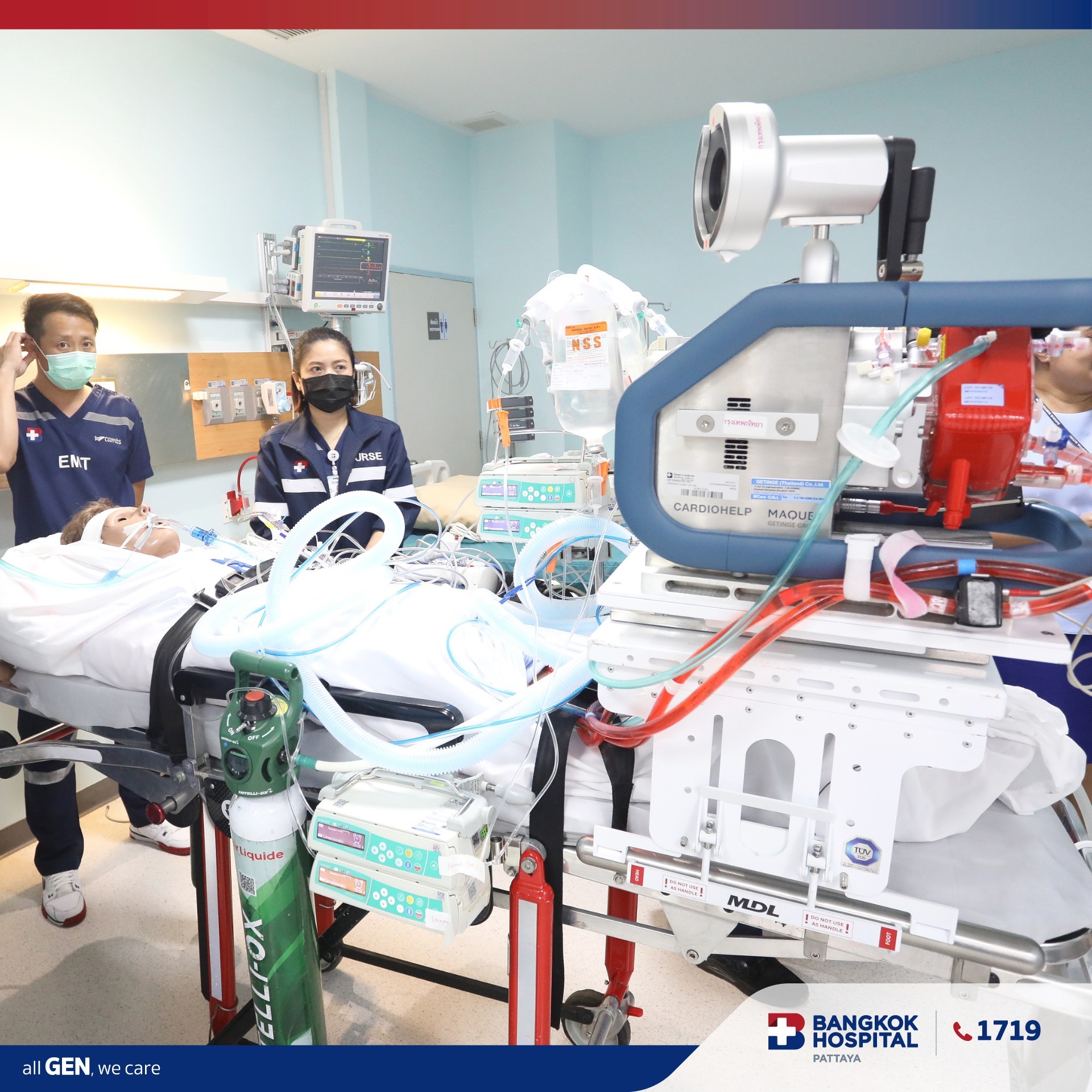 To strengthen our readiness in handling critical heart and respiratory patients, our Heart Center team joined hands with Bangkok Hospital Rayong to conduct a full-scale ECMO (Extracorporeal Membrane Oxygenation) patient transport drill.