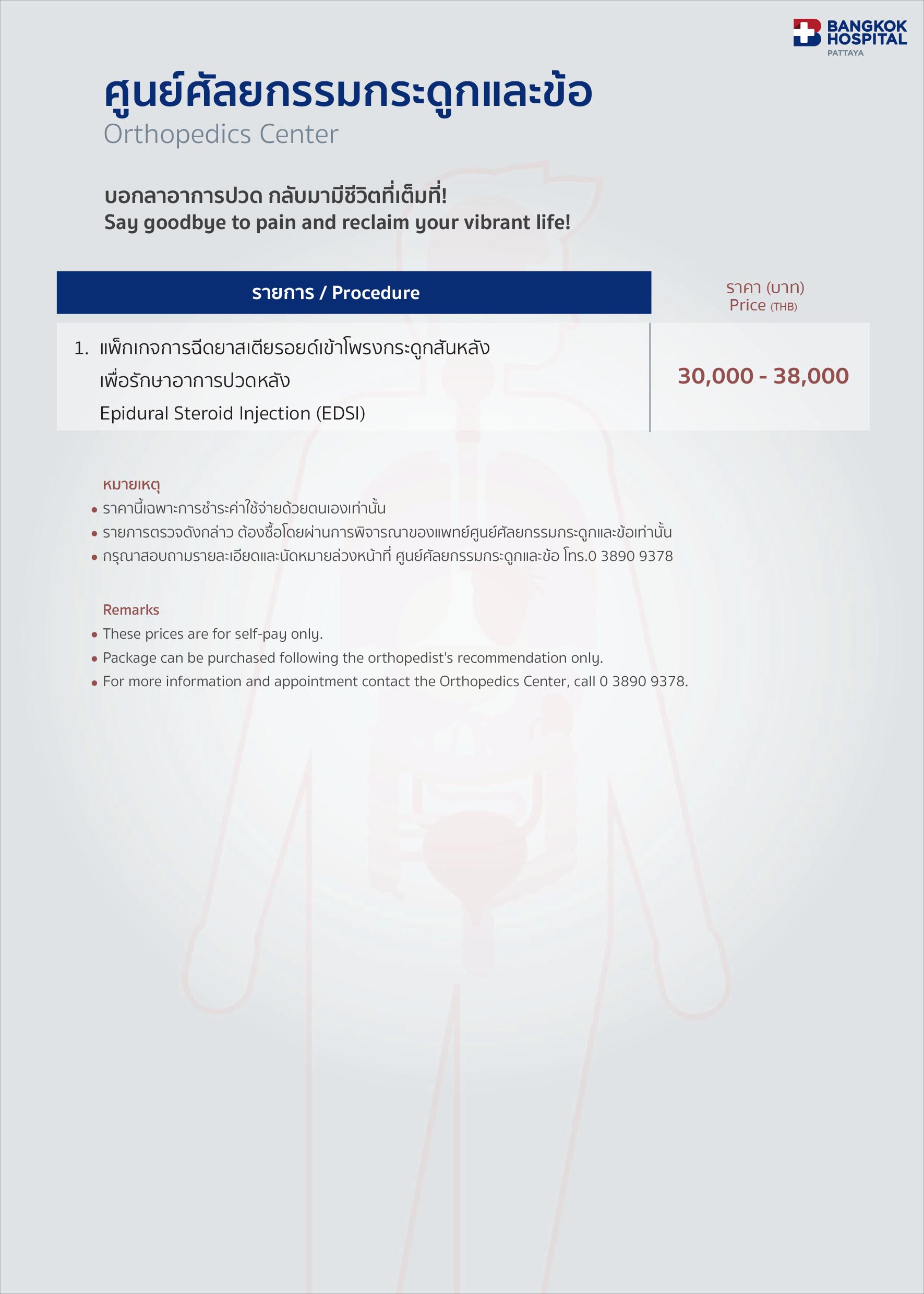 Epidural Steroid Injection (EDSI) Price 30,000-38,000 THB