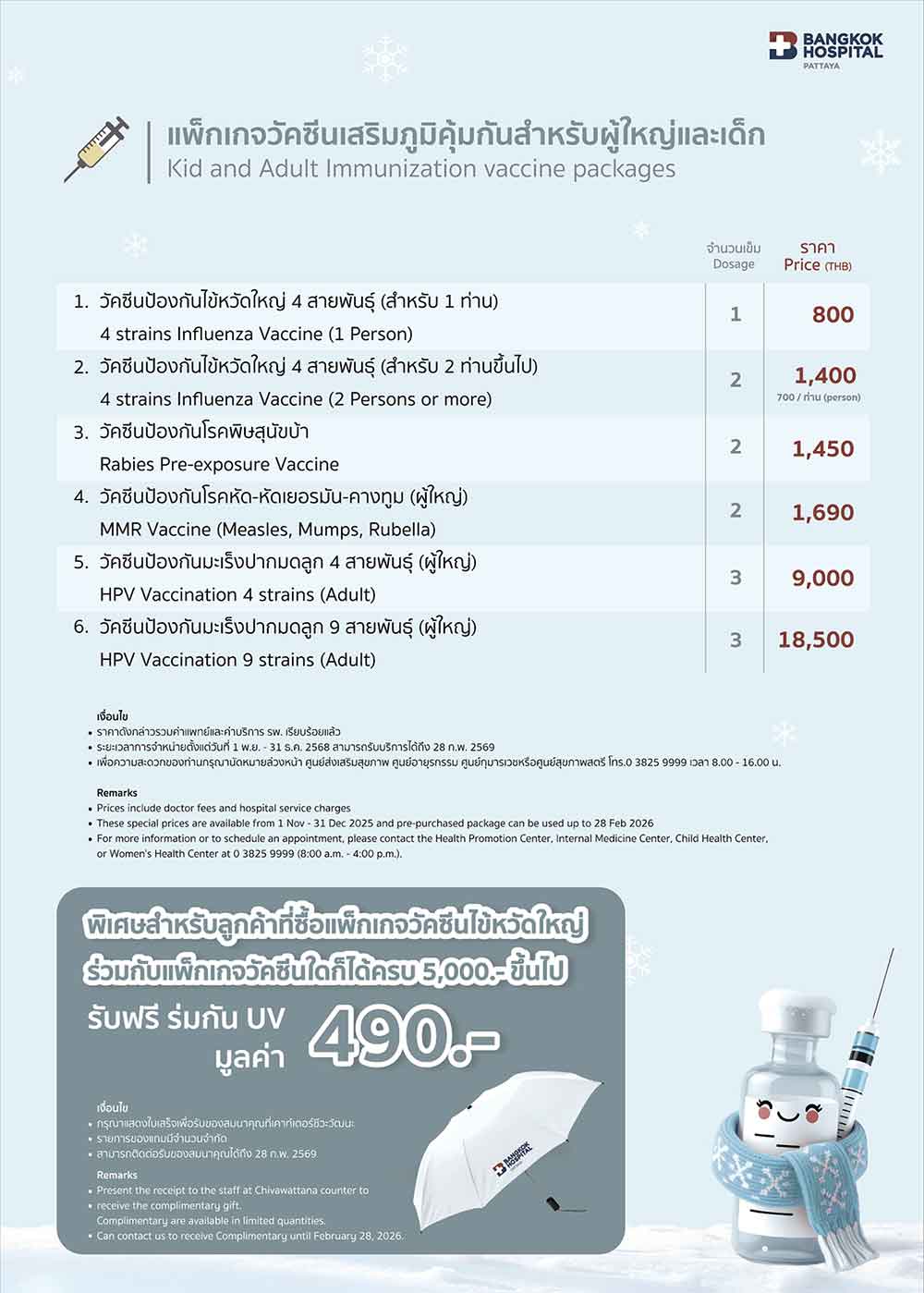 - 4 strains Influenza Vaccine (2 Persons or more) 2 Dosage / Price 1,400 THB