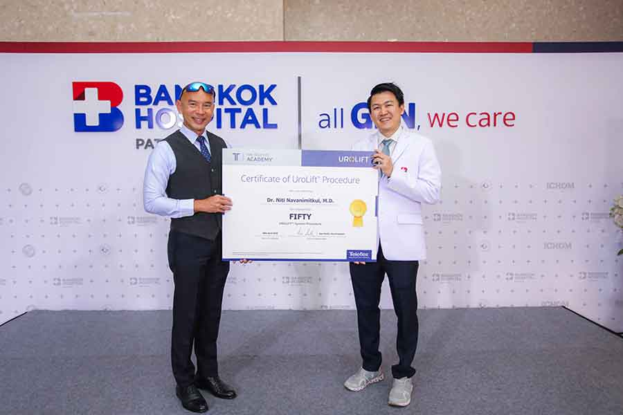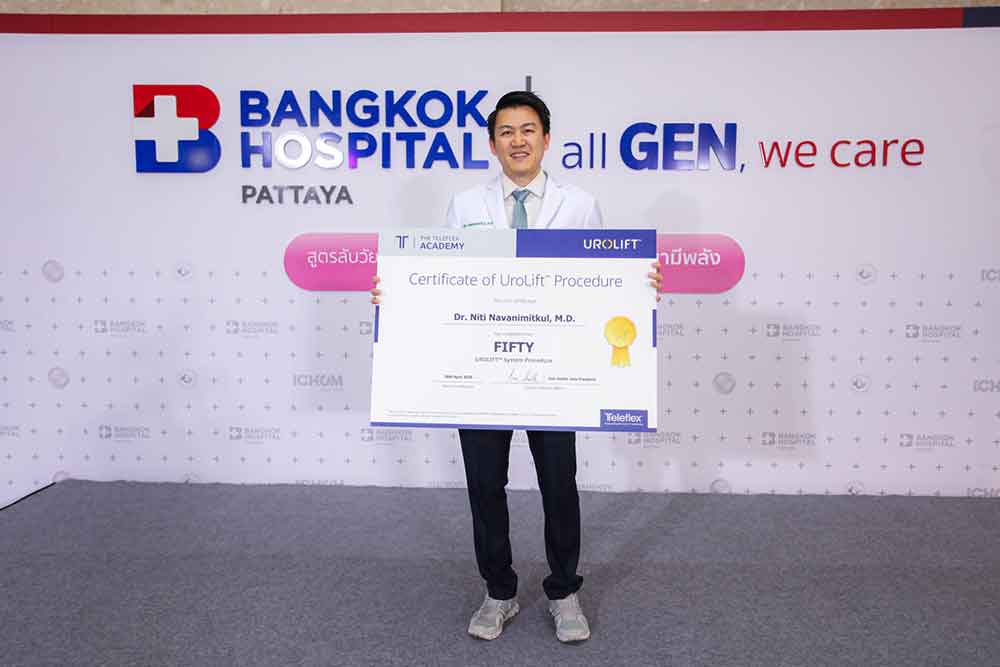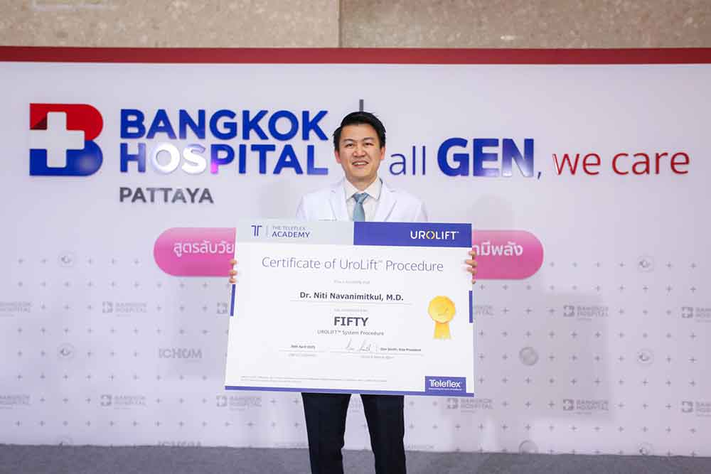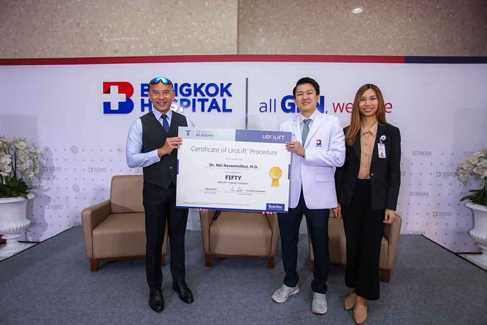 ขอแสดงความยินดีกับ นพ.นิธิ นาวานิมิตกุล ศัลยแพทย์ระบบทางเดินปัสสาวะ โรงพยาบาลกรุงเทพพัทยา ในโอกาสที่ได้ทำหัตถการรักษาผู้ป่วยโรคต่อมลูกหมากโต ด้วยวิธี Urolift ครบ 50 ราย เป็นคนแรกของประเทศไทย โดยมี พญ.ชนิศา อินณชิต ผู้ช่วยผู้อำนวยการโรงพยาบาลกรุงเทพพัทยา และ Mr. Wei KuoHau Senior Commercial Manager South East Asia Interventional Urology จากบริษัท เทเลเฟล็กซ์ เมดิคอล (ประเทศไทย) จำกัด ร่วมแสดงความยินดีในความสำเร็จครั้งนี้