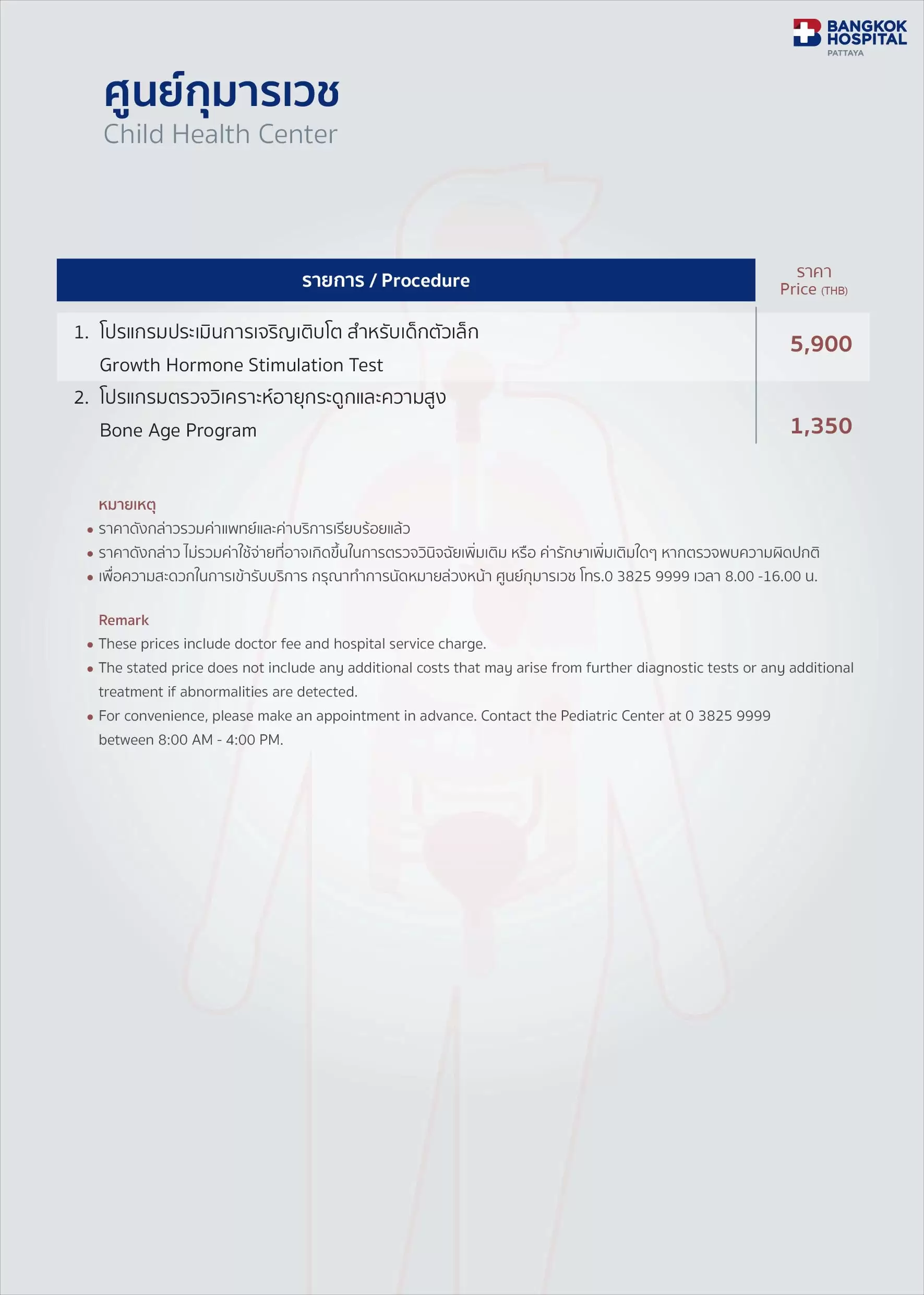 - โปรแกรมประเมินการเจริญเติบโต สำหรับเด็กตัวเล็ก ราคา 5,900 บาท