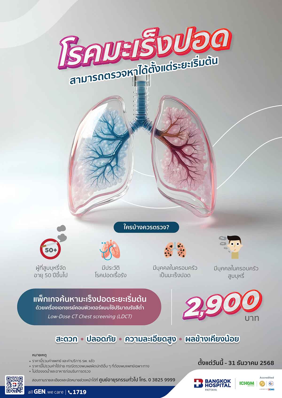 แพ็กเกจค้นหามะเร็งปอดระยะเริ่มต้น ด้วยเครื่องเอกซเรย์คอมพิวเตอร์แบบใช้ปริมาณรังสีต่ำ