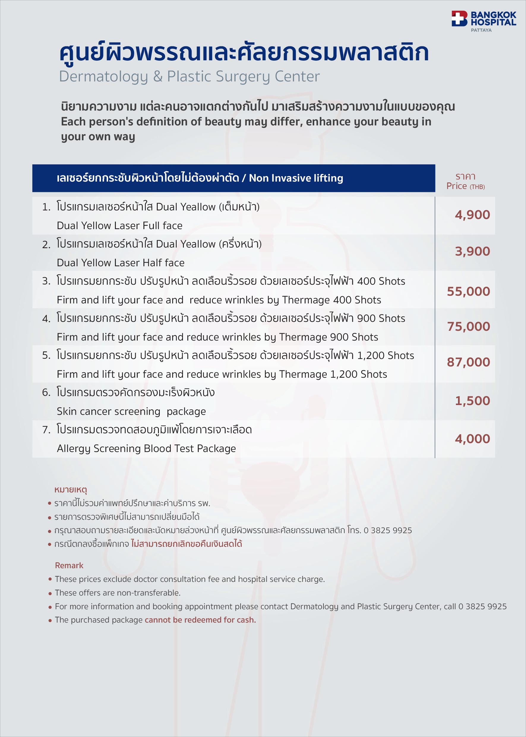 - กรุณาสอบถามรายละเอียดและนัดหมายล่วงหน้าที่ ศูนย์ผิวพรรณและศัลยกรรมพลาสติก โทร. 0 3825 9925