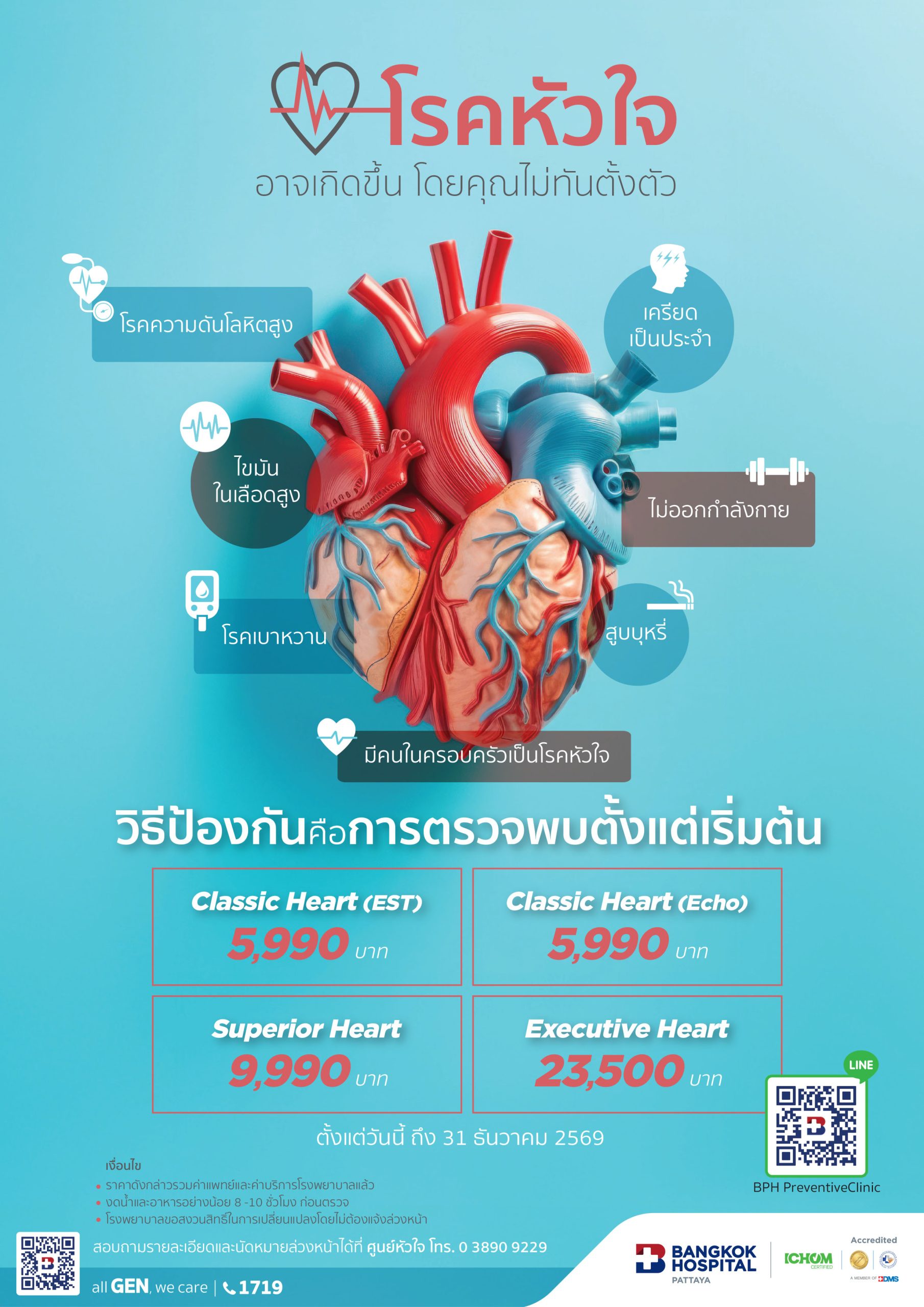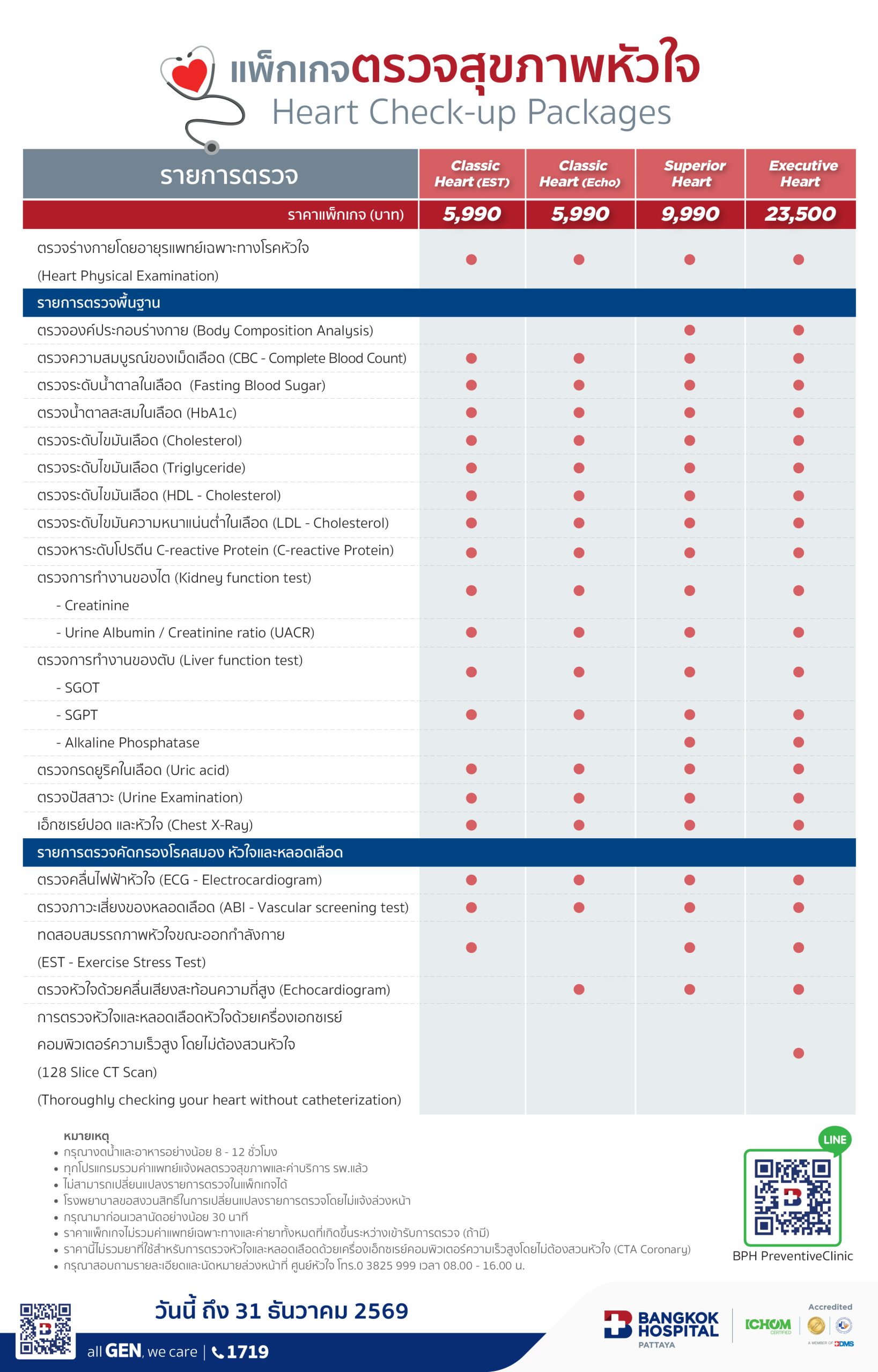 5. ราคาแพ็กเกจไม่รวมค่าแพทย์เฉพาะทางและค่ายาทั้งหมดที่เกิดขึ้นระหว่างเข้ารับการตรวจ (ถ้ามี)