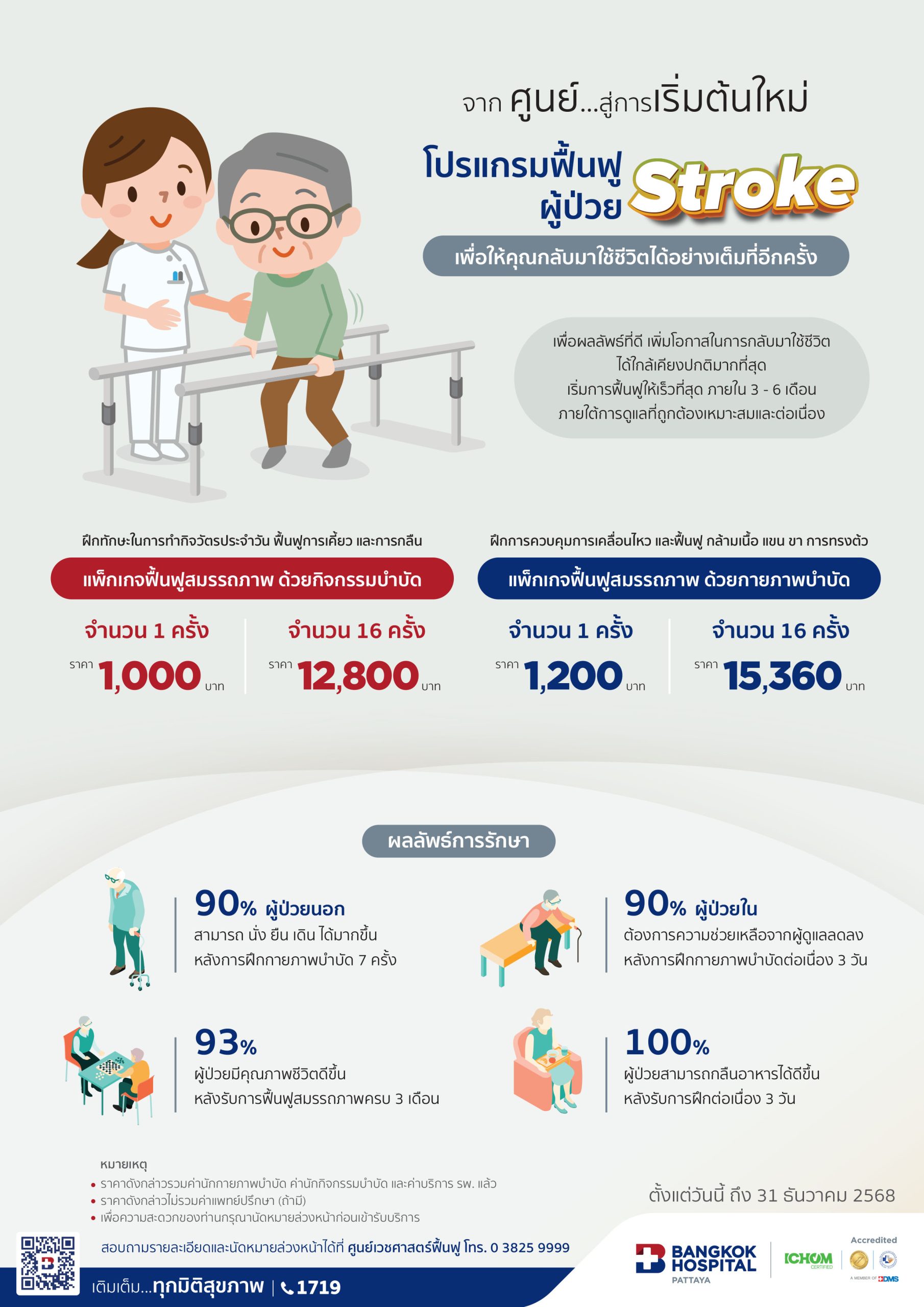 - ราคาดังกล่าวรวมค่านักกายภาพบำบัด ค่านักกิจกรรมบำบัด และค่าบริการ รพ. แล้ว